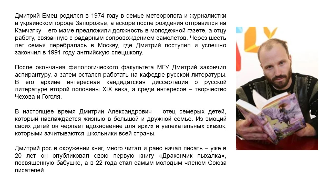 писателя. И нам своими историями он дарит радость, поднимая настроение.Тем