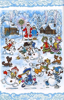 Котелков, Пряжкин, Чугунков, Чайников и девочки - снеговички (ударение на